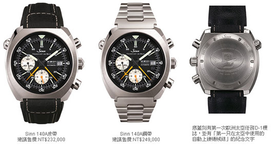 Sinn140 A-以全新科技,複製第一只在太空中使用的自動上鍊機械錶, 限量紀念錶,2013年11月,台灣與全球同步發表上市!