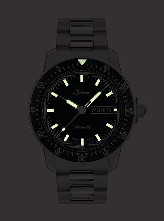 Sinn 104 St Sa整體設計風格充滿濃厚的復古氣息,雙向旋轉飛行外還,讓人一眼就能感覺到早期飛行腕錶的造型風格,不同於60年代小錶徑設計的錶款,Sinn 104 St Sa的錶徑些微加大到41mm,以符合現在錶款流行的潮流,消光黑色面盤與白色夜光刻度明顯對比呈現,易讀性佳,而等同潛水錶的200米防水規格,是Sinn腕錶給人一貫的信賴感。