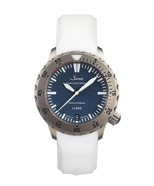 Sinn U200B以獨特的海軍藍面盤結合專利泰級處理硬化的外環設計,消費者可以選擇搭配白色矽膠錶帶或是藍白相間的尼龍錶帶,展現不同的感覺。在色彩搭配設計上也是Sinn首次嘗試創新的用色風格,海軍藍面盤和白色夜光功能指針,跳脫以往傳統的黑白顏色搭配,時尚的海洋風格設計外觀,相信更能吸引眾人的目光。