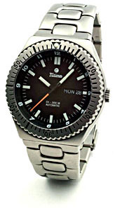 關於DI 300,「DI」得自於英文「diver」-潛水人。它是以飛行錶款為基礎,再加上符合水中運動玩家所需求的全新設計。對於DI 300,設計工程師們以純鈦金屬製造和霧面處理的強悍外殼,並使用鎖入式底蓋以及防眩處理的藍寶石水晶鏡面,也提供了具有便利性的鋸齒狀計時外環。這只最新的Tutima錶款能夠承受水面下300公尺的壓力,所以無論是一般運動或是專業潛水人員,都可以去追求想要到達的極限領域;他們都將發現,DI 300會是他們重要而且安全的必要配備。