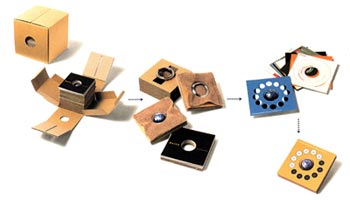 就連它的包裝,也是產品的一部份,也充滿樂趣。拆開包裝取出各部份組合,可以是錶,可以是桌鐘,可以是項鍊,可以是領飾……,隨你的心情及創意變化。