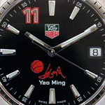 此款姚明限量錶全球僅有1100只,更特別在刻度十一點的方位上,特別標注出紅色11,以彰顯姚明在休士頓火箭隊的球衣編號。面盤以黑色為底,採用深具東方特色的中國紅,秀出姚明的親筆簽名與NBA籃球圖樣。