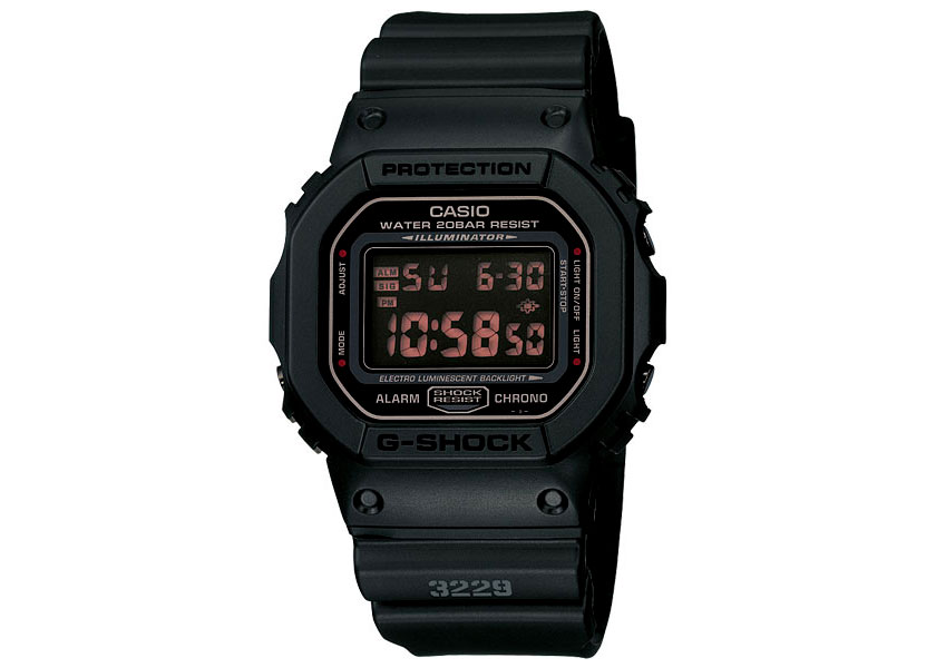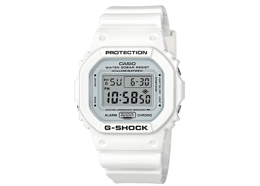 G-SHOCK自1983年誕生以來,持續不斷創新及突破,首支G-SHOCK DW-5000C以經典的方型外觀問世,同時也象徵了品牌傳奇不朽的精神。經典暢銷錶款5600系列,繼承G-SHOCK的強悍特性,既有的耐衝擊構造、防水200米、1/100秒碼錶、倒數計時、每日鬧鈴等多項功能,時尚的外觀適合在整個夏季或任何場合配戴。