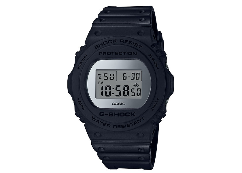 為慶祝G-SHOCK誕生滿35周年,堅持不斷創新的G-SHOCK,回歸80’年代榮耀的外觀風潮,以擁有第一隻G-SHOCK基因的DW-5600;復刻經典再推出的DW-5700為設計原型推出「MIRROR SERIES」全新系列,錶款外觀為大膽有力的霧面磨砂黑設計,展現出G-SHOCK 無限Tough 的精神,重現G-SHOCK初衷的強悍性能,而錶面與按鈕以金、銀鍍膜的全新設計,創造出搶眼且獨特的金屬鏡面效果,提供銀色或金色兩種色系選擇,璀璨耀眼的金屬光澤能緊緊抓住眾人的目光。