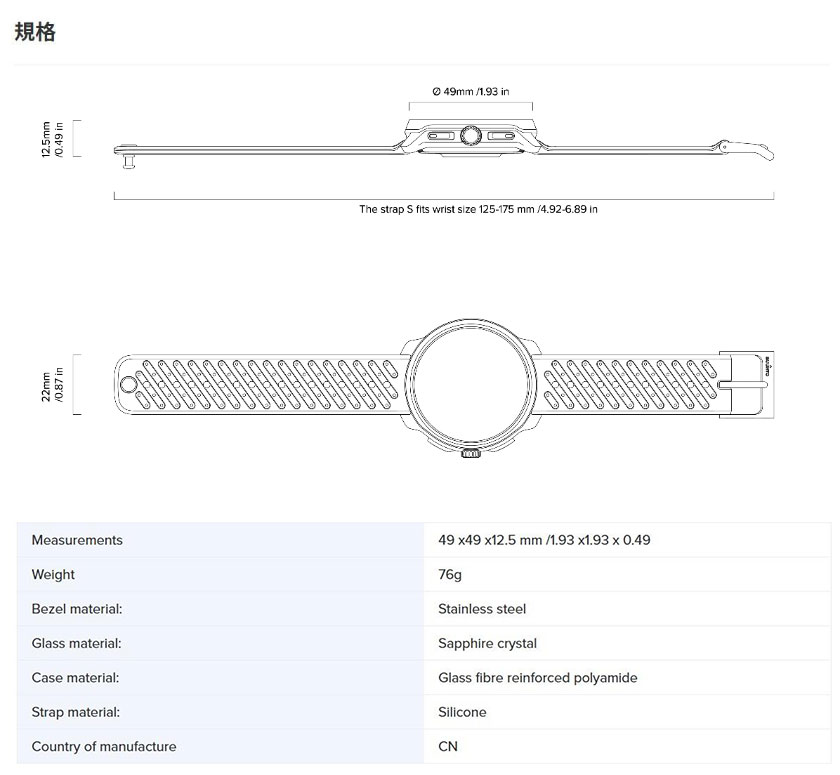 機身重量從69g/83g減輕為65g/76g(不銹鋼/鈦金屬),可見SUUNTO在追求輕量化的路上持續進步。