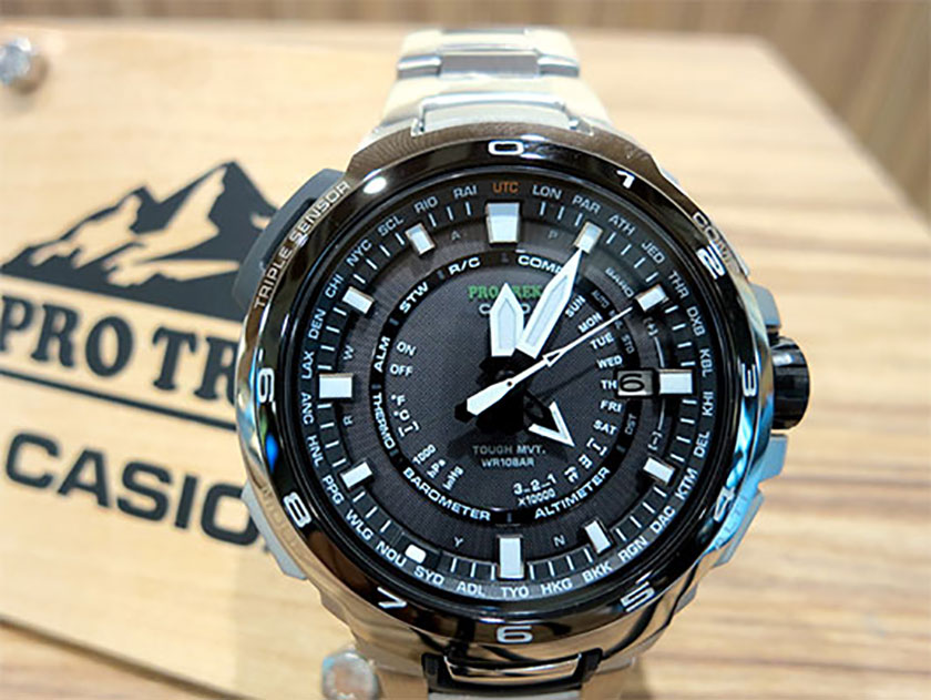 不過,手錶總也是飾品,十幾年來所有Casio 登山錶都是以電子液晶顯示,除了嫌膩,對於用慣高級腕錶的消費者也不容易被重視,更何況Casio手錶近幾年由於鈦金屬材質、太陽能動力與電波校時等功能的配備,高階款式價格已直上台幣3萬元之普,需要再精緻化才能被市場接受。CASIO頂級登山錶款PRX-7001T在這個期待下問世。