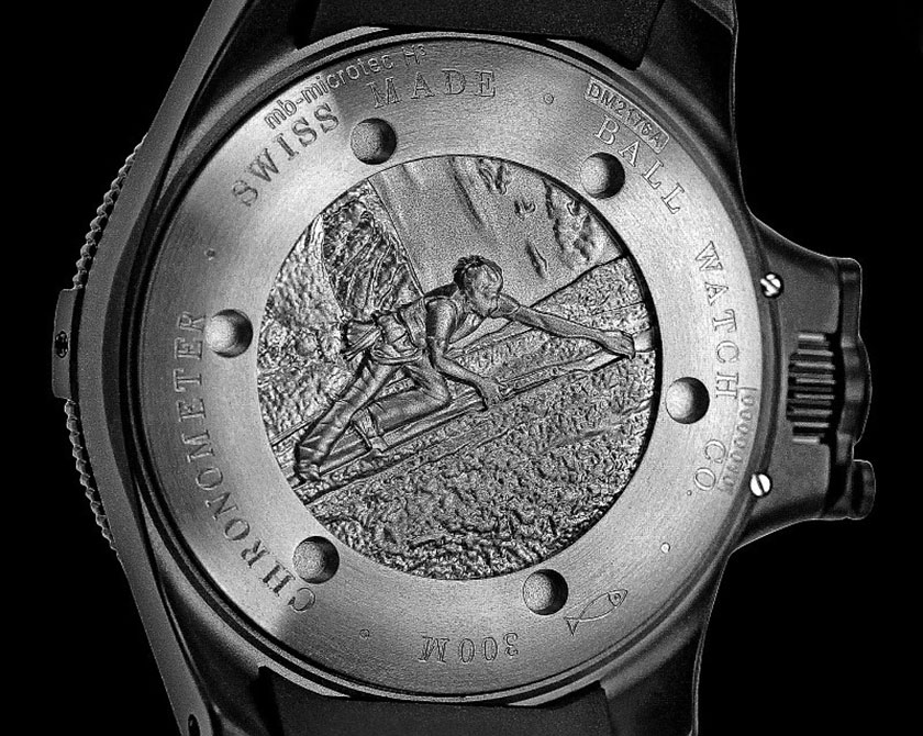 除了類鑽碳(DLC)塗層以外,BALL Watch創先在手錶上加入了增強版夜光塗層,跟以黑陶瓷製成的旋轉外圈相得益彰。我們為BALL Watch公司首度結合這兩種元素獻上感謝。計時圈的數字及刻度都會發光,讓佩帶者在漆黑中仍可清晣讀時。陶瓷製成的旋轉外圈使手表的耐力增強,減少受腐蝕、刮花與和紫外光等的影響。計時圈採用單向的轉動系統,即使佩帶者不經意觸動了它也不會影響正確的預設計時。
