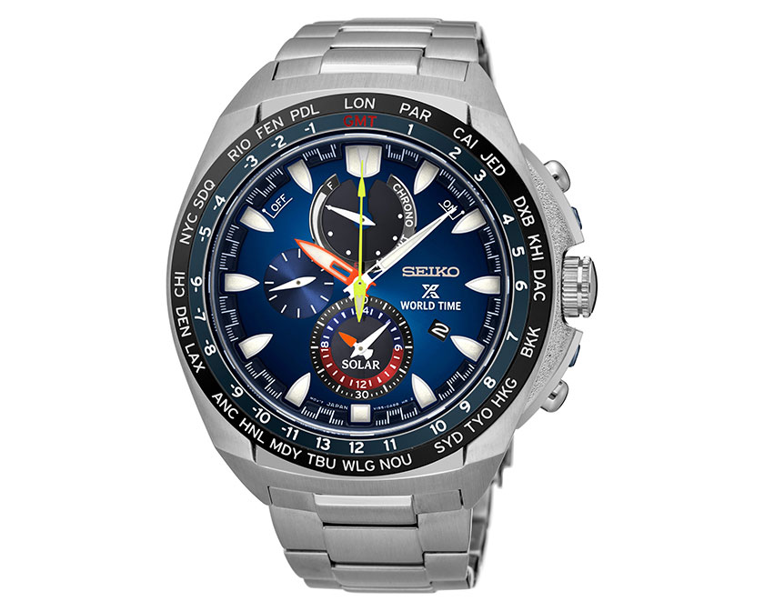 為適應嚴峻的遠洋帆船賽事及克服航行中各種狀況,錶款採用耐衝擊的不鏽鋼材質,打造出輕量且不受海水影響的可靠錶殼,搭配考量各種氣象條件的防水功能,是航海賽事中不可或缺的規格。為了提高錶款辨識度,以具有存在感的寬版螢光色指針、刻度與鮮明配色的小錶圈為設計,再搭配上25個城市的世界時間功能,讓挑戰世界的選手能清楚迅速地掌握時間,更能夠安全而舒適地挑戰賽事。面盤上的螢光色靈感來自於船身上的螢光字樣,而兩款不同的藍色面盤則各自詮釋在外海不同的海洋風貌。